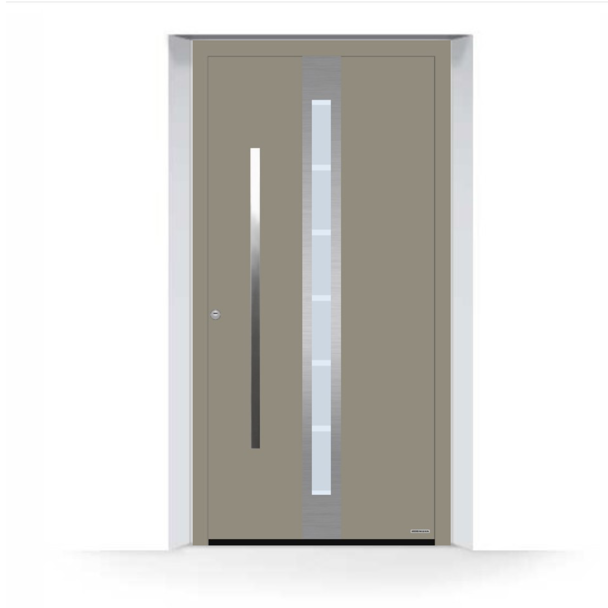 • bei Haustüren mit Verglasung: 3-fach Wärmeschutzglas; Außenscheibe VSG klar
